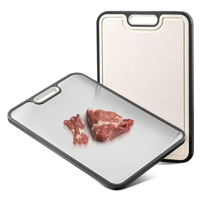 This kitchen titanium alloy chopping board combines versatility. food-grade materials. and effortless cleaning. Its dual-purpose design. superior quality. time-saving functionality. and elegant gift presentation make it an ideal addition to any kitchen.