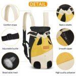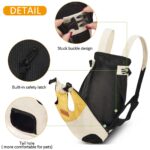 Both the straps and the adjustable straps are padded to help reduce weight on the shoulders and back for a more comfortable fit. Large area of mesh ventilation holes keep pets cooler and more comfortable. A built-in safety lock prevent your pet from jumping out.